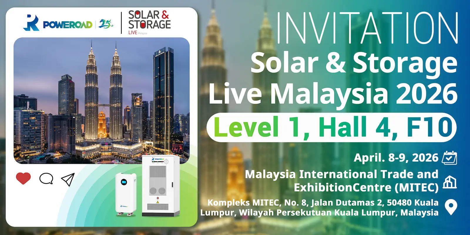 We are pleased to announce that POWEROAD will be exhibiting at Solar & Storage Live Malaysia 2026, one of the region’s leading events for solar